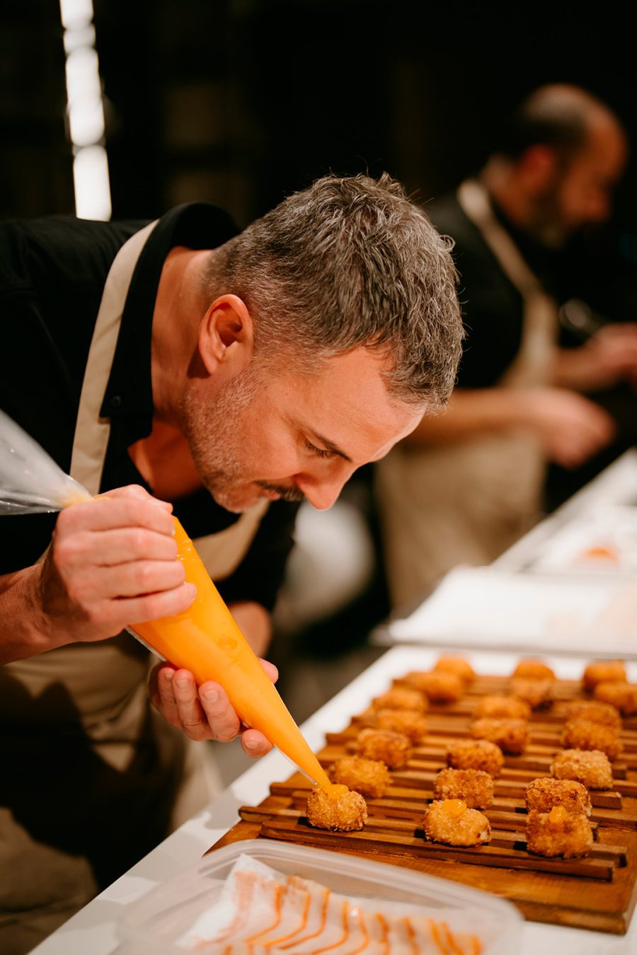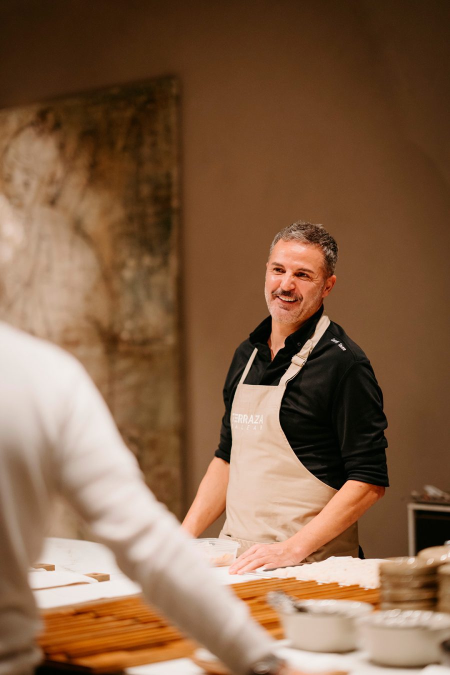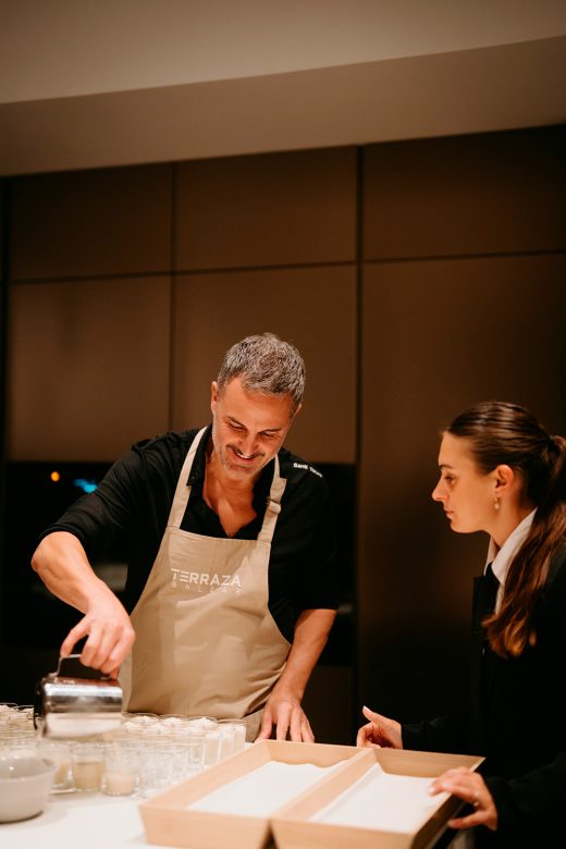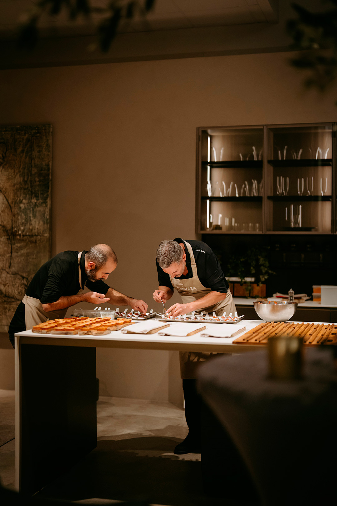 The highlight of the night was a live show-cooking by Michelin-starred chef Santi Taura, who brought his signature blend of tradition and contemporary cuisine to the event. His dishes, rooted in local ingredients and flavours, added a distinctive culinary dimension to the reception and transformed the gathering into a truly sensorial experience.